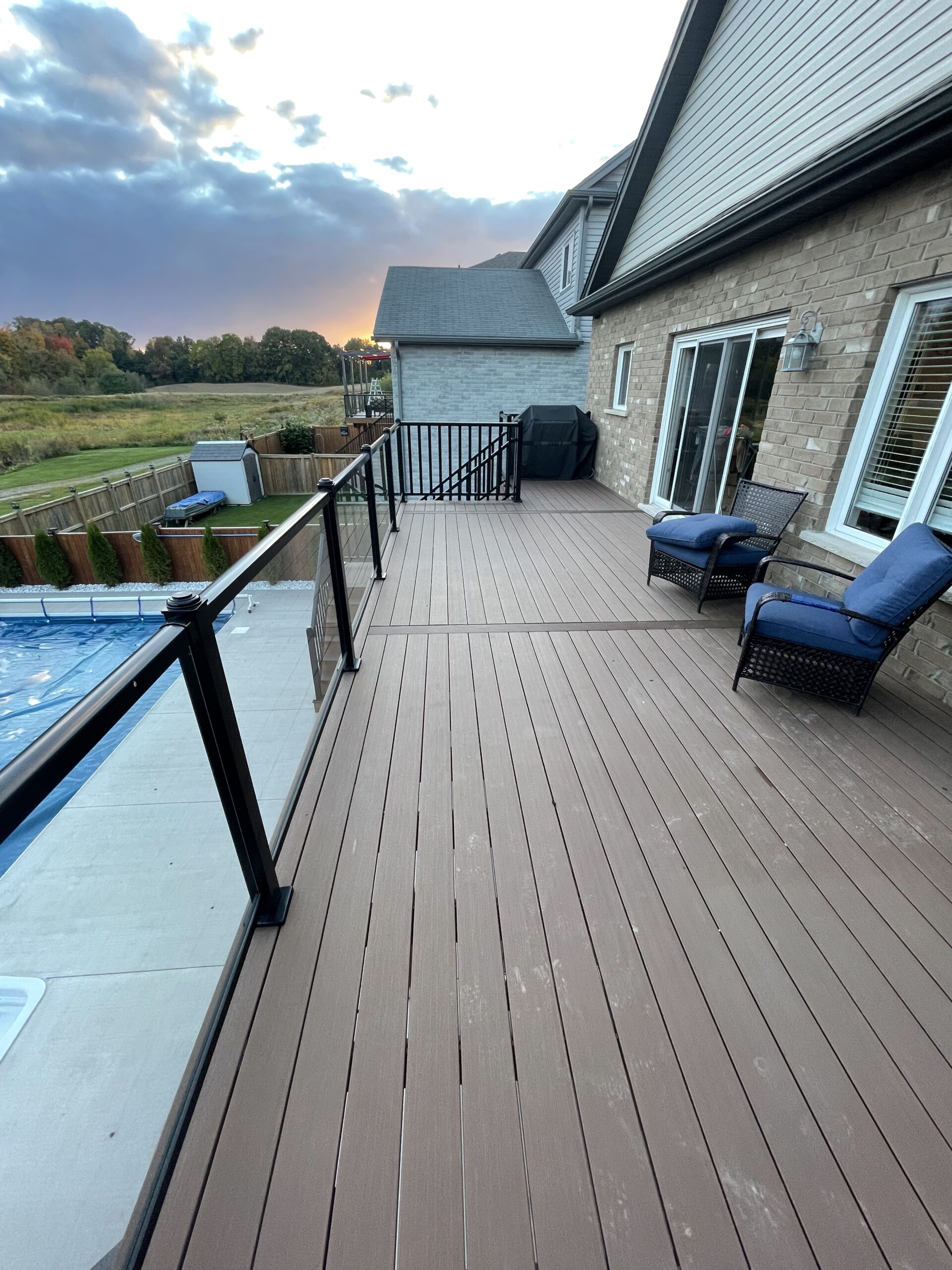 Yes. We design decks with a variety of features, including wide staircases, built-in privacy walls, and sleek glass railings for an open feel. We’ll recommend the best options based on your layout and needs.